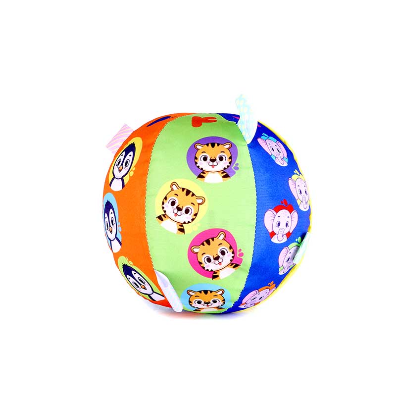 بازی با توپ از اولین و محبوبترین بازیهای کودکان محسوب میشود و این توپ کوچولو تجربهی بازی با توپ را برای نوزادان به تجربهای مفید و لذتبخش تبدیل میکند، زیرا به دلیل کاملاً پارچهای بودن از ایمنی کامل برخوردار است؛ قابل شستشو است؛ دارای نوارهای باریکی است که کودکان میتوانند با گرفتن آنها ماهیچههای ظریف دست خود را تقویت کنند؛ رنگهای درخشان آن حواس کودک را تحریک میکند و او را به سمت خودش میکشد و گذشته از همهی اینها کودکان میتوانند بزرگتر که شدند مفهوم اعداد ۱ تا ۶ و نام چند حیوان را هم با کمک توپ کوچولو یاد بگیرند.