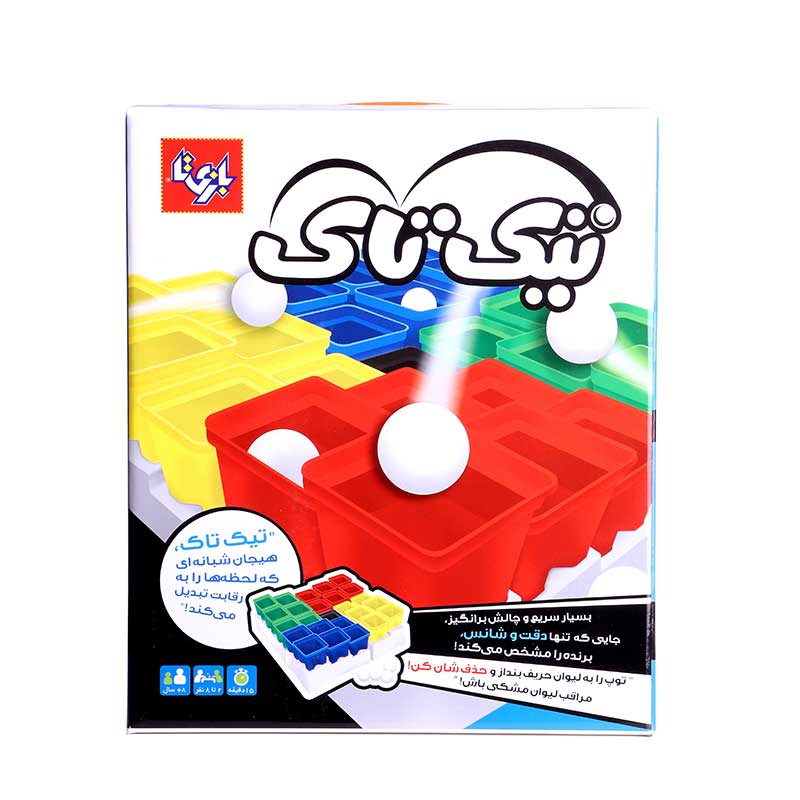 تیک تاک از آن بازیهای فوق هیجانانگیز است که میتواند نسلهای متفاوت را با شادی و شور بینظیری دور هم جمع کند یا ساعتها باعث تفریح و سرگرمی دوستان شود. بازی شامل ۲۵ لیوان، ۸ عدد توپ پینگپونگ و ۴ عدد سینی مخصوص قفل شونده از جنس پلاستیک بسیار با کیفیت است. قوانین بازی بسیار ساده هستند، اما برای برنده شدن باید در پرتاب توپها به داخل لیوانهای مورد نظرتان مهارت پیدا کنید. تیک تاک در یک بستهبندی دارای دسته برای حمل راحت بازی عرضه میشود.