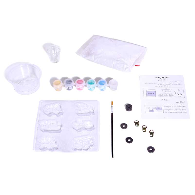 ساختن ماشینهای تزئینی کوچک، برای کودکان و بخصوص پسربچهها، تجربهی بینظیری است که میتواند در ایجاد اعتماد به نفس در آنان نقش قابل توجهی داشته باشد. مجموعهی قالبگیری و رنگآمیزی شهر کامیونها با ارائهی تمامی وسایل لازم فرصت چنین تجربهی دلنشینی را فراهم میکند. این مجموعه شامل پودر مجسمهسازی، دو پیمانه، یک کاسه برای درست کردن خمیر، قالب برای ۶ مدل مختلف ماشین راهسازی، شش رنگ اصلی گواش، یک قلم مو، سه قلاب آویز و شش قطعه آهنربای حلقهای و دفترچهی راهنماست. کودکان میتوانند از ۵ سالگی، تحت نظارت بزرگترها، خمیر مجسمهسازی را آماده و قالبگیری و پس از اضافه کردن آویز یا آهنربا، در نهایت آنها را با خلاقیت خود رنگآمیزی کنند. از ماکتهای آماده شده میتوان برای آویزان کردن یا تزئین روی یخچال یا هر سطح فلزی دیگر استفاده کرد. در عین حال میتوان آنها را به صورت کولاژ در نقاشیها به کار برد و تابلوهای برجسته خلق کرد.