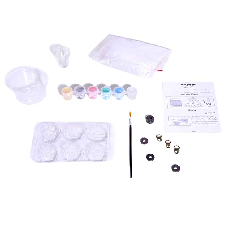 کیکهای فنجانی از جمله خوراکیهایی هستند که بخصوص به خاطر شکلها و رنگهای زیبا و متنوع به شدت مورد توجه کودکان قرار میگیرند. مجموعهی قالبگیری و رنگآمیزی کیک فنجونی این فرصت را ایجاد میکند که کودکان بتوانند کیکهای فنجانی متنوعی بسازند و با این کار ضمن لذت بردن از عمل ساختن، بر خلاقیت، اعتماد به نفس و صبوری خود بیفزایند. این مجموعه شامل پودر مجسمهسازی، دو پیمانه، یک کاسه برای درست کردن خمیر، قالب برای هر بار درست کردن ۶ کیک فنجانی، شش رنگ اصلی گواش، یک قلم مو، شش قطعه آهنربای حلقهای و دفترچهی راهنماست. کودکان میتوانند از ۵ سالگی، تحت نظارت بزرگترها، خمیر مجسمهسازی را آماده و قالبگیری و پس از اضافه کردن آهنربا، در نهایت آنها را به سلیقهی خود رنگآمیزی کنند. از کیکهای آماده شده میتوان برای تزئین روی یخچال یا هر سطح فلزی دیگر یا به صورت بخشی از کولاژ استفاده کرد.