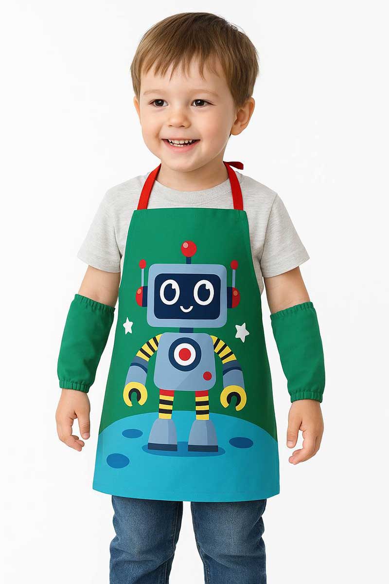 پیشبند مهد کودک در چهار رنگ و چهار طرح متنوع و زیبا تولید شده است تا کودکان بتوانند با خیال راحت و بدون دغدغهی والدین از کثیف شدن لباسهایشان، به هر فعالیتی که مایل هستند بپردازند. این پیشبند که دارای آستین کشدار جداگانه هم هست نقاشی، گِل بازی، خمیربازی، آشپزی، باغبانی و هر فعالیت دیگری را برای کودکان لذتبخشتر میکند. جنس این روپوش از پارچهی شمعی و ضد آب است و کودکان میتوانند از آن در خانه، مهد کودک و دبستان استفاده کنند.